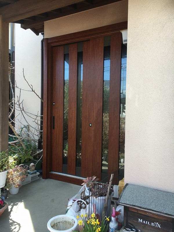 玄関ドアの交換と共に、ポーチのアプローチを変え、タイル張りとしました